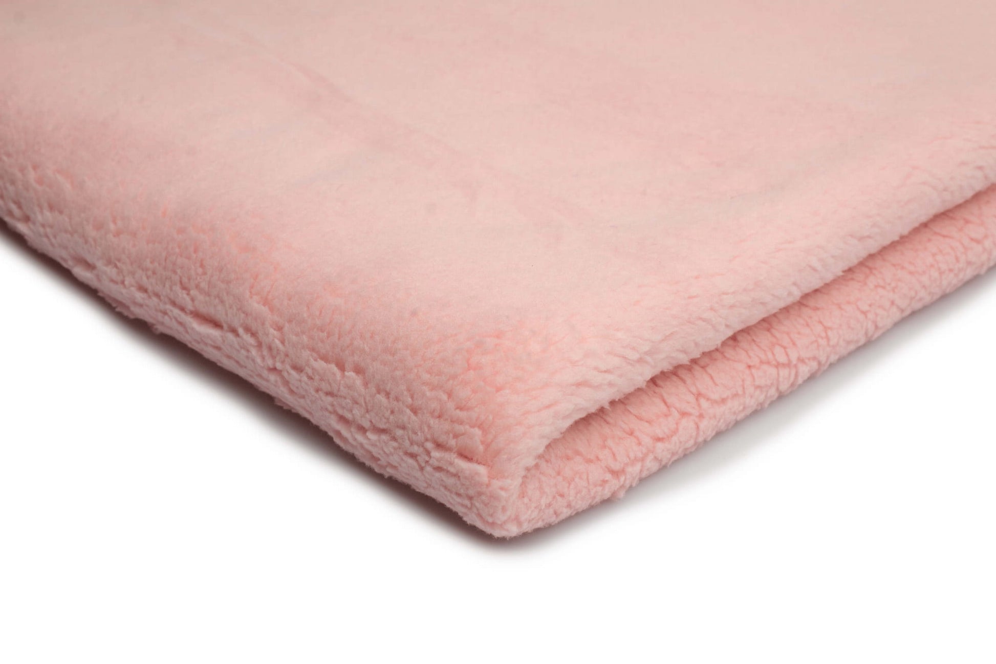pružný, šíře 160cm (nadýchaný a hebký, má pěkně pevný podklad, nižší chlup - po vyprání alespoň nedělá chuchvalce), 100% polyester, 220g/m2