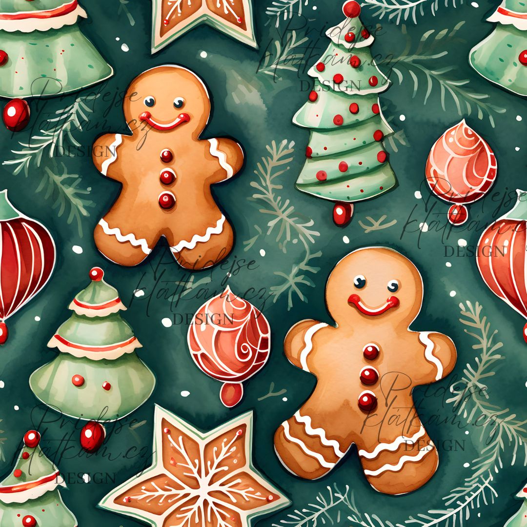 Žebrovaný úplet - Perníček a stromečky